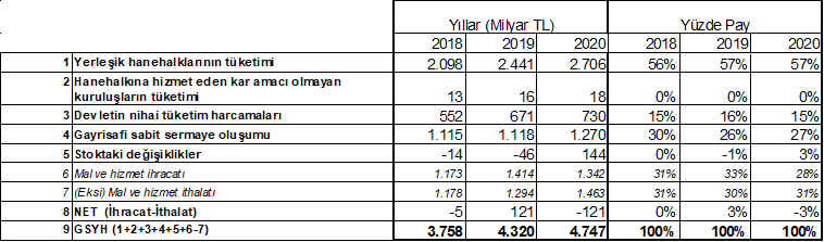 -Hanehalkı %57 iken, Devlet harcamaları %15’te, Sabit sermaye oluşumu da %27’lerde son yıllarda önemli bir değişim gözükmüyor gibi.