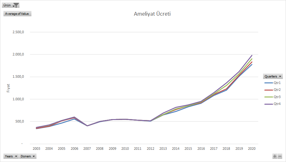 Ameliyat ücreti grafiğine baktığımızda 2 bin TL’ye yaklaşmış bir durum görünüyor. Özellikle 2016’den sonra ikiye katmış olması dikkati çekiyor.