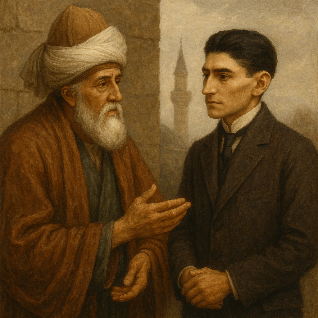 Rumi: “Ah, kelimelerdeki sevgili kardeşim, hoş geldin! Sana biraz çay ikram edebilir miyim? Gül yapraklarının kokusu ruhunu yatıştıracaktır.” Kafka: “Teşekkür ederim, Rumi, ama korkarım ki çay ruhumun susuzluğunu gidermeye yetmeyebilir. İnsan böyle bir karanlığın ortasında nasıl anlam bulabilir?” Rumi: “Karanlık yalnızca ışığın yokluğudur. Yansımalarımızı gerçekten görebileceğimiz yer bu gölgelerdir.” Kafka: “Peki ya yansıma yoksa? Ya“Mevlana ve Kafka” yazısının devamını oku